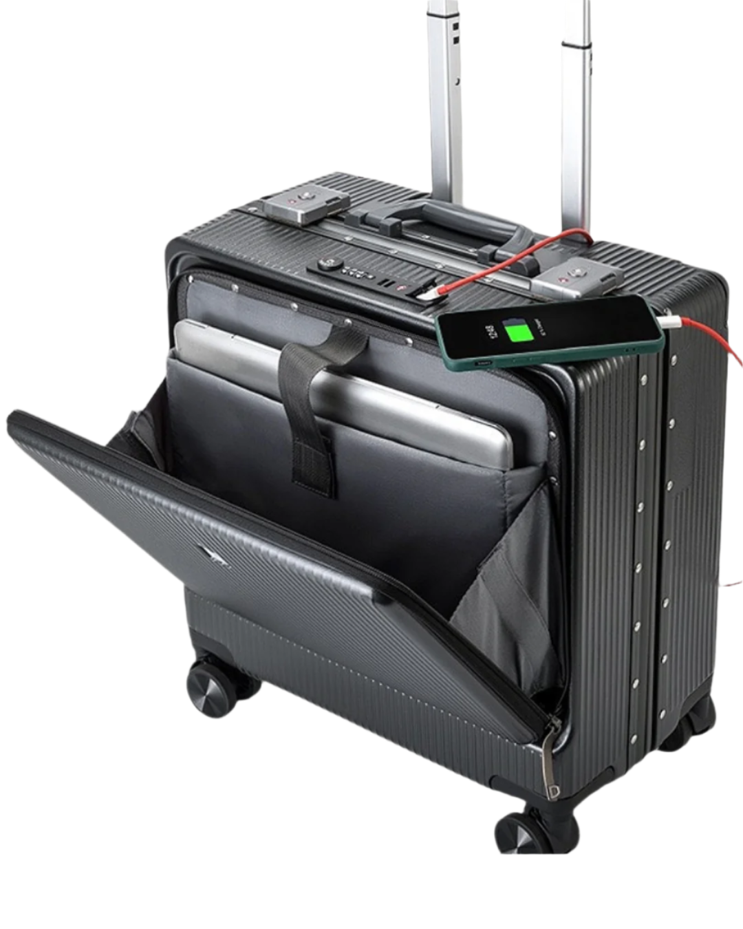 Stay connected on the go with a built-in USB charging port, and enjoy peace of mind with a secure TSA-approved combination lock. The reinforced corners and choice of zipper or aluminum frame designs add strength without bulk — making it perfect for business trips, weekend getaways, and daily use.